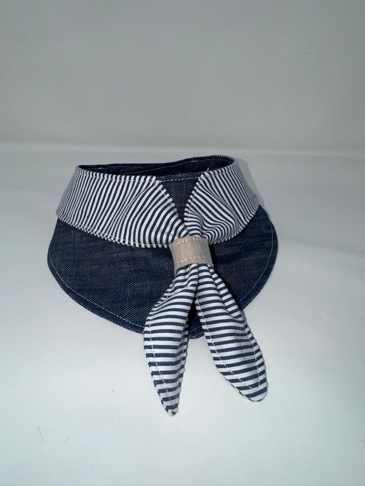 媽媽縫紉 - 寵物圍兜兜(牛仔布x間條領巾)