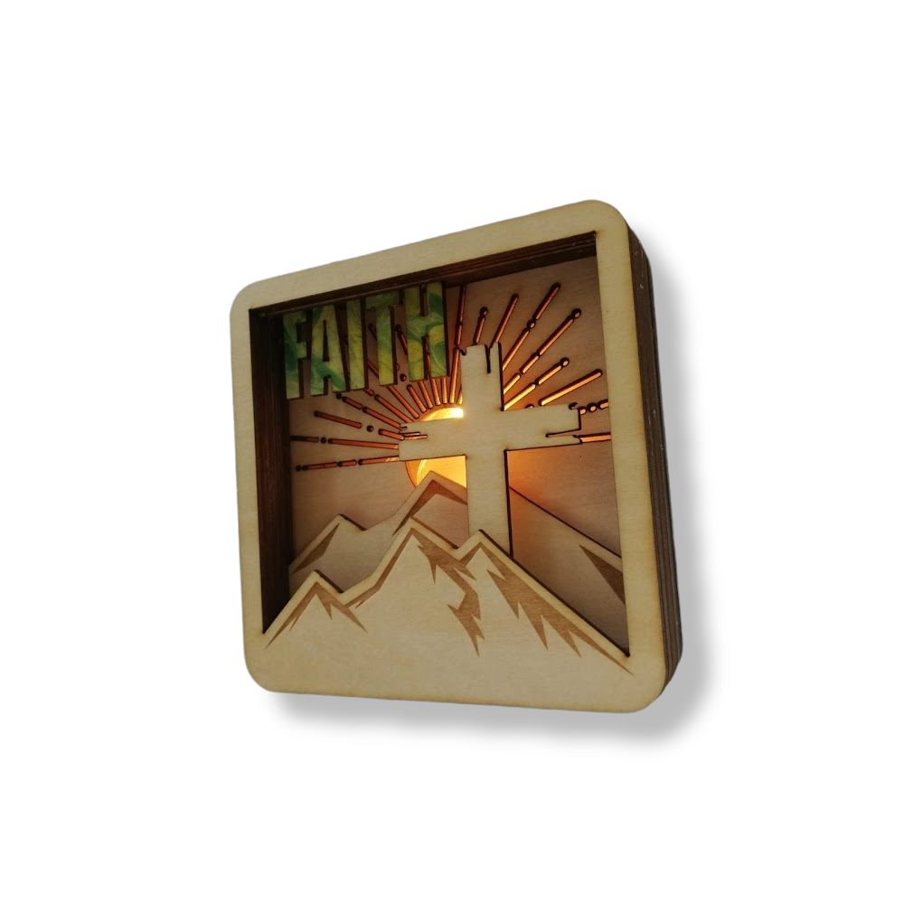 貨品名稱:木製燈盒 貨品尺吋:約W110mm * H110mm * D30mm 備  註: 1. 特別留言(留言可刻於下方),需另加$50 2. FAITH的字眼可選擇上色或不上色,於負責同事聯絡閣下時可自由提出。 自取地點:慈雲山慈正邨正怡樓地下晉業中心