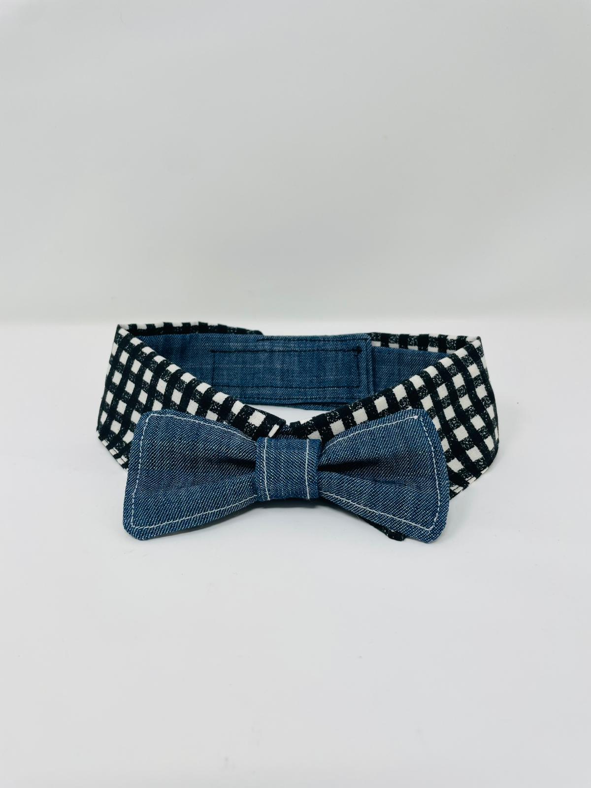 媽媽縫紉 - 寵物圍兜兜(黑白格仔圖案x牛仔布領巾)